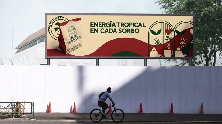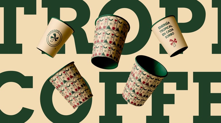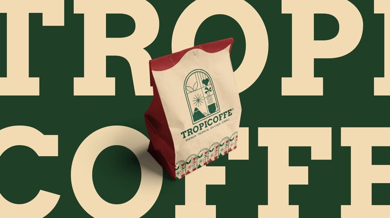 Para la creación y perfección de este proyecto, me sumergí en un análisis profundo de las necesidades del cliente, explorando cada respuesta plasmada en el brief para capturar la verdadera esencia de TROPICOFFE. La identidad visual creada busca transmitir la frescura, calidez y vitalidad de los trópicos en cada detalle, desde los colores hasta los elementos gráficos.
